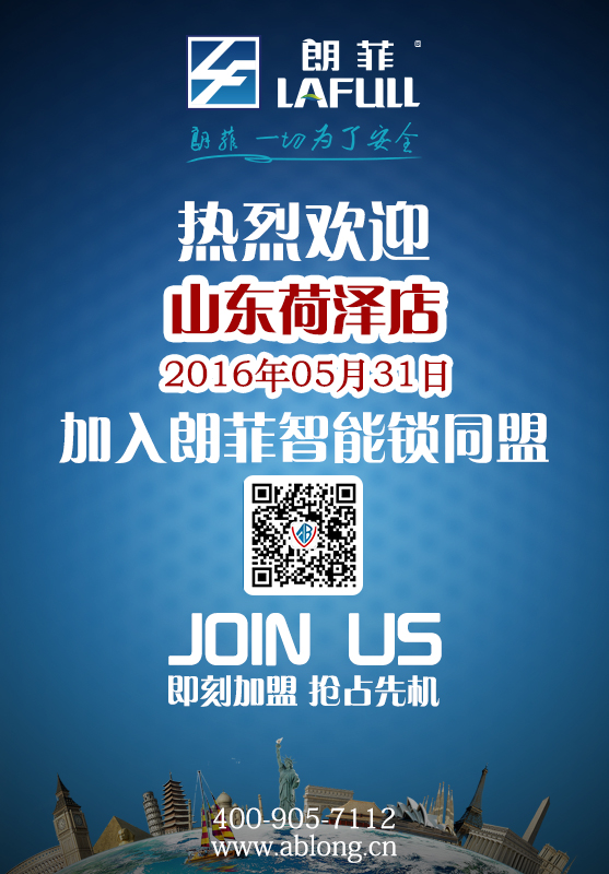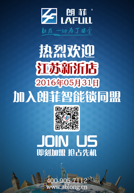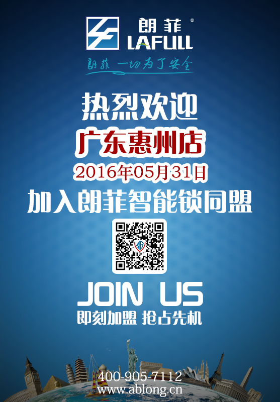 熱烈祝賀溫州蒼南、陜西西安、山東荷澤、廣東惠州、江蘇常州、江蘇新沂、浙江衢州等地地區成為朗菲智能鎖戰略合作伙伴。